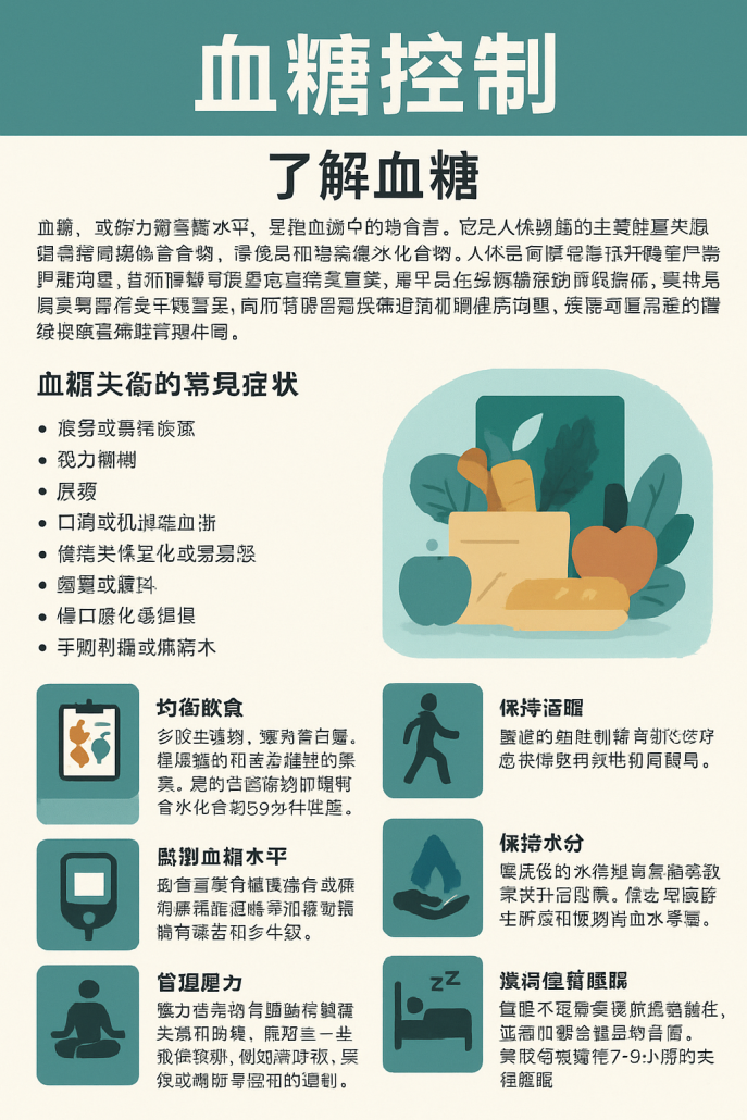 血糖,或血糖水平,是指血液中糖的含量。它是人體細胞的主要能量來源,來自我們所攝取的食物,尤其是碳水化合物。人體透過胰島素和升糖素等激素嚴格調節血糖水平,胰島素可以促進葡萄糖進入細胞,而升糖素則有助於在血糖水平低時釋放儲存的葡萄糖。維持血糖平衡對整體健康至關重要,尤其是在預防糖尿病等疾病方面。